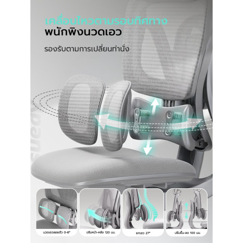 มาพร้อม “ระบบติดตามเอวแบบปีกคู่รอบด้าน” ที่สามารถขยับตามแนวกระดูกสันหลังได้อัตโนมัติ ไม่ปล่อยให้หลังลอย ช่วยกระจายน้ำหนักและแรงกดได้อย่างสม่ำเสมอ เหมาะมากสำหรับคนที่มีอาการปวดหลังจากการนั่งทำงานเป็นเวลานาน