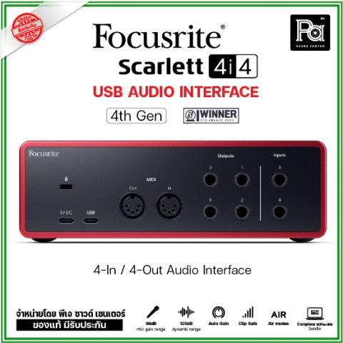 Focusrite Scarlett 4i4 ออดิโออินเตอร์เฟส 4-In/4-Out Audio Interface Gen 4 รุ่นใหม่ล่าสุด – คมชัดระดับสตูดิโอ ใช้งานง่าย ครบทั้งอัด ทำเพลง และไลฟ์สด