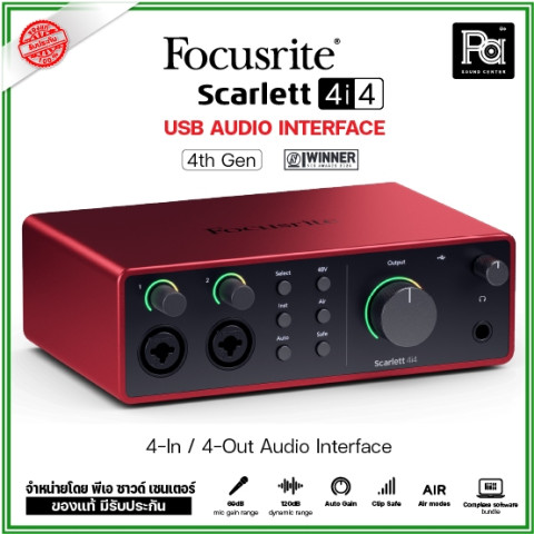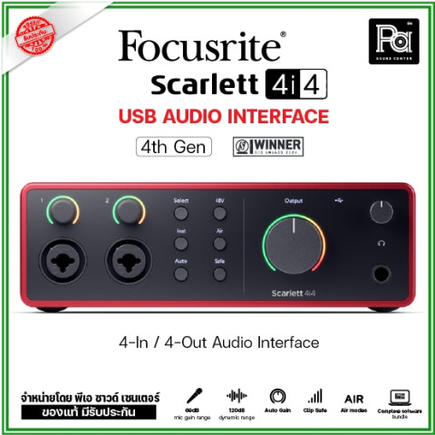 อัปเกรดสตูดิโอของคุณให้ทันสมัยยิ่งขึ้นด้วย Focusrite Scarlett 4i4 4th Generation อินเตอร์เฟสทำเพลงยอดนิยมที่กลับมาในโฉมใหม่ ดีไซน์สวย ทนทาน และมาพร้อมเทคโนโลยีช่วยอัดเสียงให้ “ง่ายแต่ได้คุณภาพ” เหมาะทั้งนักร้อง นักดนตรี และโปรดิวเซอร์ที่ต้องการงานเสียงระดับมืออาชีพในราคาจับต้องได้ ในราคาพิเศษเพียง 13,860 บาท