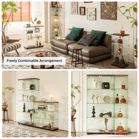 รุ่นนี้เป็นสีวอลนัท โมดูลขนาด 45 × 45 × 151 ซม. (ตู้เข้ามุม 4 ชั้น) โครงสร้างกระชับ ใช้พื้นที่เพียง 1㎡ แต่สร้างสรรค์เป็นมุมบูติกสวยโดดเด่นได้ทันที ทั้งโชว์และจัดเก็บได้ในเวลาเดียวกัน