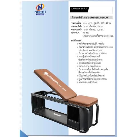 รุ่น: NORTH FITNESS Dumbbell Bench (ม้านั่งไม่มีอุปกรณ์เสริม)