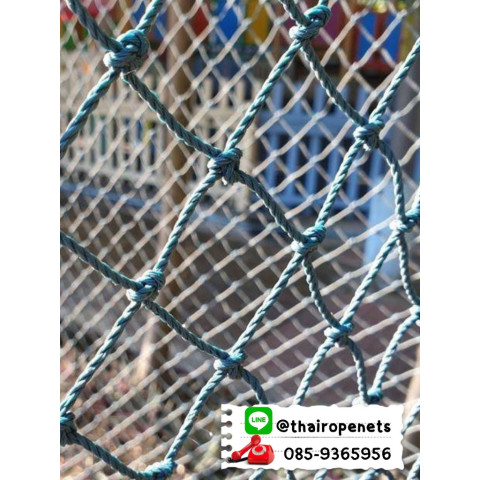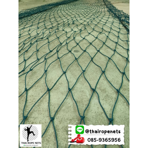 ตาข่ายผลิตจากเชือกคุณภาพสูง เส้นเชือกเกลียวอัดแน่น ขนาด 2 มม. ผสมสารกันแดด (UV Protection) ช่วยยืดอายุการใช้งานกลางแจ้งได้ยาวนาน 8–10 ปี สีฟ้าอมเขียวช่วยให้สนามดูโดดเด่นสวยงาม สบายตา เข้ากับบรรยากาศการเล่นกีฬาและท้องฟ้าภายนอกได้เป็นอย่างดี