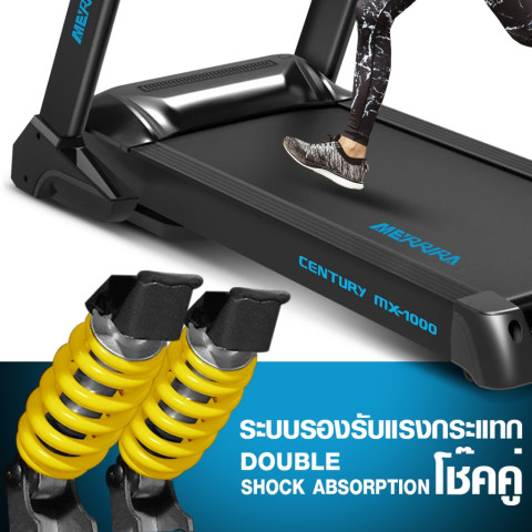 ด้วยมอเตอร์ 5 แรงม้า ความเร็วสูงสุด 22 กม./ชม. และพื้นที่วิ่ง 58 x 145 ซม. รุ่น MX-1000 ให้สัมผัสการวิ่งที่ลื่นไหล มั่นคง ไม่สะดุด เหมาะสำหรับทั้งผู้เริ่มต้นและนักวิ่งที่ต้องการซ้อมจริงจัง สามารถใช้งานต่อเนื่องได้นาน รองรับการเทรนหนัก ๆ ได้อย่างมั่นใจถนอมเข่าและข้อเท้าด้วยระบบโช้คคู่