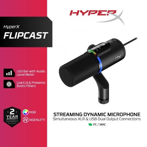 ยกระดับสตรีมและพอดแคสต์ของคุณด้วย HyperX FlipCast Streaming USB/XLR Dynamic Microphone (B2CM1AA) ไมโครโฟนระดับสตูดิโอที่ออกแบบมาเพื่อครีเอเตอร์ยุคใหม่ ให้เสียงคมชัดแบบมืออาชีพ ทั้งสำหรับการไลฟ์สตรีม เกมมิง หรือการบันทึกเสียงงานคอนเทนต์ทุกประเภท