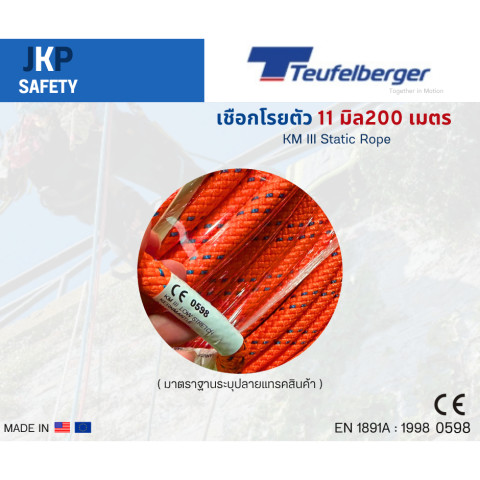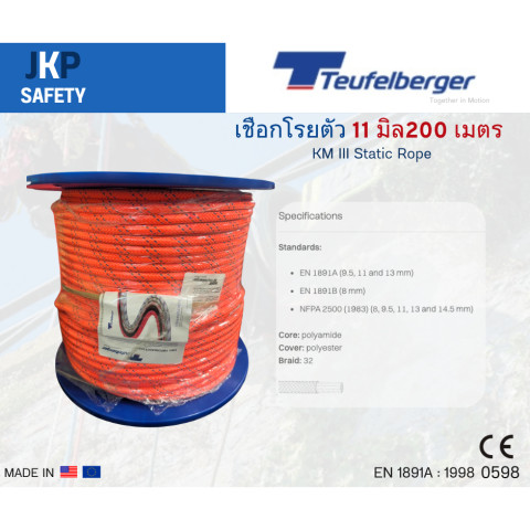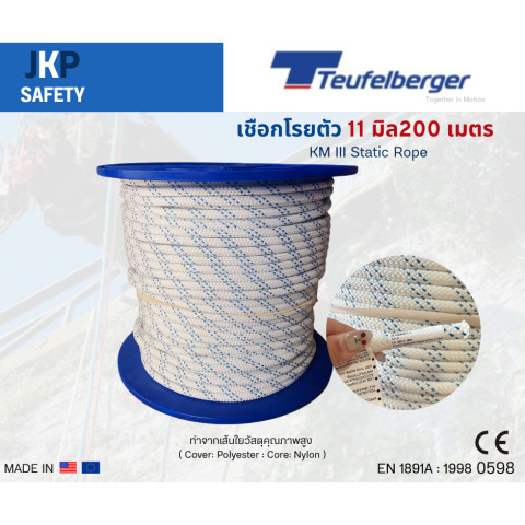 Teufelberger KM III เชือกโรยตัว Static Rope 11 มม. ยาว 200 เมตร (ผลิตในยุโรป) ส่งจากไทย