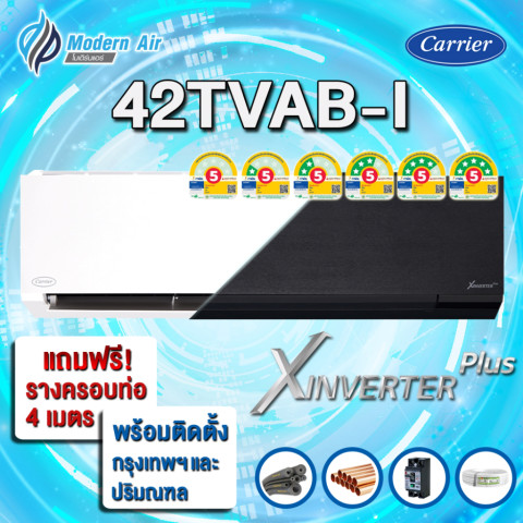 CARRIER X INVERTER PLUS รุ่นใหม่ 42TVAB Wi‑Fi (พร้อมติดตั้งเฉพาะเขตกรุงเทพและปริมณฑล) เครื่องปรับอากาศอินเวอร์เตอร์ดีไซน์พรีเมียมสีดำ มาพร้อม Wi‑Fi ควบคุมง่าย ช่วยให้บ้านเย็นสบาย อากาศสะอาด และประหยัดไฟได้มากกว่า เหมาะสำหรับผู้ที่ต้องการทั้งความคุ้มค่าและคุณภาพอากาศที่ดียิ่งขึ้น