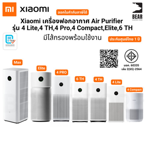 เครื่องฟอกอากาศ Xiaomi Air Purifier พร้อมไส้กรอง (Global Version รองรับภาษาไทย) ตัวช่วยยกระดับคุณภาพอากาศภายในบ้านให้สะอาดสดชื่น ลดฝุ่น PM2.5 กลิ่นไม่พึงประสงค์ และสารก่อภูมิแพ้ เหมาะสำหรับบ้าน คอนโด ห้องนอน ห้องเด็ก และออฟฟิศ มาพร้อมการควบคุมอัจฉริยะผ่านแอปและสั่งงานด้วยเสียง ใช้งานง่าย ครอบคลุมหลายขนาดห้องด้วยรุ่นให้เลือก: 6 / Elite / 4 Lite / 4 Pro / 4 Compact พร้อม ประกันศูนย์ Xiaomi ไทย 1 ปี