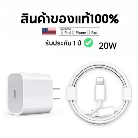 ชุดชาร์จ + สายชาร์จ Data Cable TYPE-C 20W PD พร้อมกล่องแท้ จัดส่งจากประเทศไทย และรับประกัน 1 ปี ใช้งานสะดวก ชาร์จไว เหมาะสำหรับผู้ที่ต้องการสายชาร์จคุณภาพสำหรับอุปกรณ์ Apple แบบพอร์ต Lightning โดยเชื่อมต่อกับหัวชาร์จ/อะแดปเตอร์พอร์ต Type‑C ได้อย่างลงตัว ในราคาคุ้มค่าเพียง 68.85