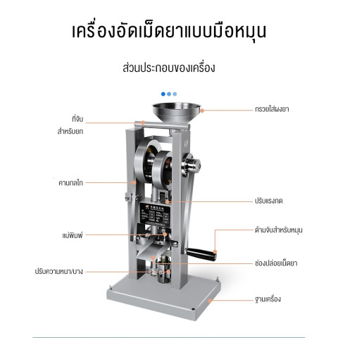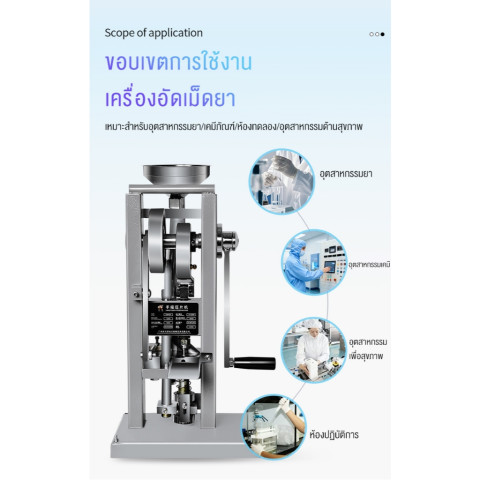 เครื่องตอกยารุ่นนี้ออกแบบมาเพื่อรองรับวัตถุดิบที่เป็นเม็ด ผลึก หรือผงที่มีความลื่นไหลดี สามารถอัดเป็นเม็ดได้อย่างแน่นสวย สม่ำเสมอ ปรับความหนาของเม็ดยาได้ตามต้องการ และเลือกขนาดเส้นผ่านศูนย์กลางของเม็ดได้ในช่วงที่เหมาะกับการใช้งานทั่วไป เหมาะสำหรับผู้ประกอบการรายย่อย โรงงานขนาดเล็ก หรือสถาบันการศึกษาที่ต้องการเครื่องมือคุณภาพสูงในงบประมาณที่จับต้องได้