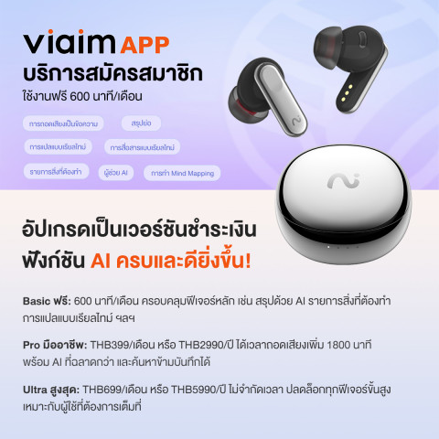 เปลี่ยนหูฟังธรรมดาให้กลายเป็นผู้ช่วยอัจฉริยะด้วย VIAIM Nano+ หูฟัง AI แปลภาษาอัจฉริยะ ที่ออกแบบมาเพื่อคนทำงานยุคใหม่ นักเรียน และสายประชุมออนไลน์โดยเฉพาะ ใช้ได้ทั้งทำงาน เรียน ประชุมออนไลน์ และฟังเพลงในคู่เดียว
