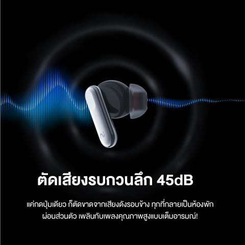 การตัดเสียงรบกวน: Active Noise Cancellation สูงสุด 45dB