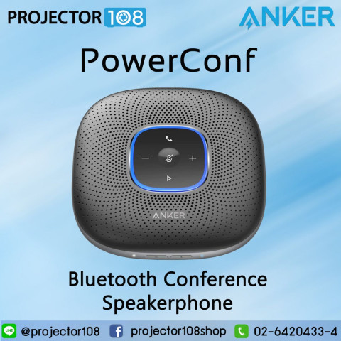 Anker PowerConf Bluetooth Portable Conference Speakerphone with 6 Microphones (PowerConf Blue) ลำโพงสปีคเกอร์โฟนสำหรับประชุมออนไลน์ที่ยกระดับการคุยงานให้ชัดขึ้นทั้งห้อง เหมาะสำหรับ Home Office, ห้องประชุมขนาดเล็ก หรือการประชุมแบบกลุ่มที่ต้องการเสียงคมชัดและตัดเสียงรบกวนได้ดี ใช้งานได้ทั้งผ่าน Bluetooth และต่อคอมด้วย USB‑C พร้อมแบตอึดสำหรับประชุมต่อเนื่องตลอดวัน