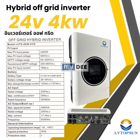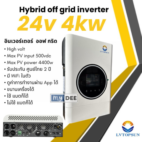 รุ่นนี้เป็นสเปค 4kW 24V (ข้อมูล “6kW 48V” ไม่ได้ระบุในสเปคที่ให้มา หากต้องการรุ่น 6kW 48V โปรดตรวจสอบรุ่น/ตัวเลือกก่อนสั่งซื้อ)