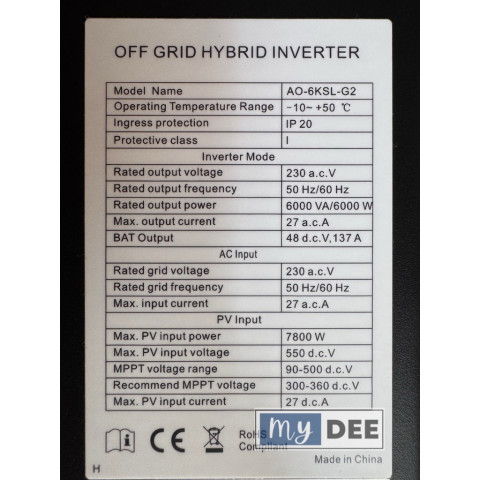ประเภท: Inverter Hybrid Off Grid