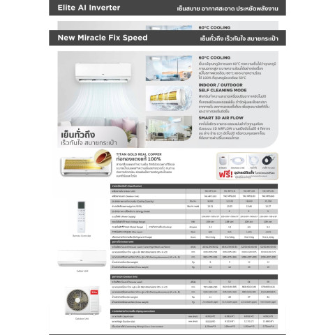ฟังก์ชัน: Titan Gold Fin / 3D Airflow / Filter Clean Reminder / Auto Restart / Healthy Filter / Sleep Mode