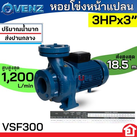 เพิ่มพลังการใช้งานน้ำของคุณให้ไหลแรงและต่อเนื่องด้วย VENZ หอยโข่ง ปั๊มน้ำไฟฟ้า หน้าแปลน กำลัง 3 แรงม้า ขนาด 3 นิ้ว รุ่น VSF 300/3 ปั๊มน้ำหอยโข่งคุณภาพสูงจากแบรนด์ชั้นนำ มั่นใจได้ในประสิทธิภาพการทำงานที่ทรงพลัง เหมาะสำหรับทั้งงานอาคาร บ้านพัก และงานเกษตรที่ต้องการปริมาณน้ำมากเป็นพิเศษ
