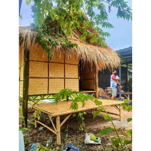 ตัวกระท่อมใช้ไม้ไผ่คัดเกรด แข็งแรง งานประกอบปราณีต โครงสร้างได้สัดส่วน นั่งสบาย นอนได้จริง หลังใหญ่รองรับได้ประมาณ 3 คน มาพร้อมระเบียงด้านหน้าเพิ่มพื้นที่ใช้สอย สามารถสั่งผลิตตามขนาดที่ต้องการได้ มีหลายแบบ หลายขนาด หลายราคาให้เลือกตามงบประมาณ