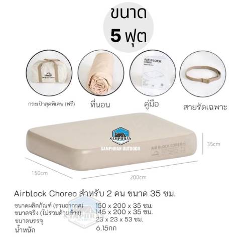 ที่นอนลมหนา 35 ซม. แน่นเต็มใบ รองรับน้ำหนักได้สูงสุดประมาณ 500 กก.