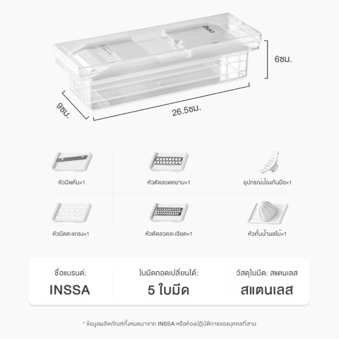 ชื่อสินค้า: INSSA เครื่องหั่นผัก อเนกประสงค์ 5 ใบมีด พร้อมภาชนะสำหรับใส่ รุ่น PSQH001