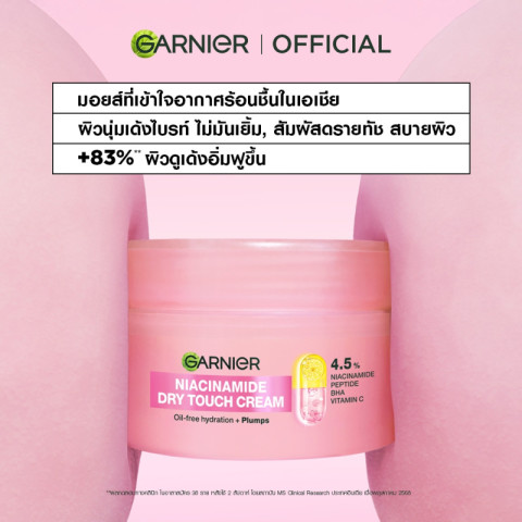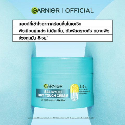 สัมผัสผิวเด้งนุ่มเหมือนโมจิ พร้อมคุมมันยาวนานด้วย การ์นิเย่ ครีมโมจิ ดรายทัชครีม 50 มล. (Garnier MOCHI DRY TOUCH CREAM 50ML) ครีมบำรุงผิวหน้าสูตรบางเบา ซึมไว ไม่เหนอะหนะ มอบผิวดูกระจ่างใส x2* พร้อมควบคุมความมันได้ยาวนานสูงสุดถึง 8 ชั่วโมง เพื่อผิวที่ดูเนียนนุ่ม เด้งชุ่มชื้น แต่ไม่มันเยิ้มระหว่างวัน