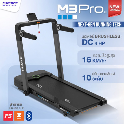 SPORT SYNOLOGY ลู่วิ่งไฟฟ้ารุ่น M3Pro มอเตอร์ Brushless 4 HP แรง เงียบ ลื่นไหล วิ่งได้ตั้งแต่วอร์มอัปไปจนถึงคาร์ดิโอจริงจัง พร้อมความเร็วสูงสุด 16 km/hr และปรับความชันได้ 10 ระดับ ให้คุณซ้อมวิ่งได้หลากหลายเหมือนมีสนามอยู่ที่บ้าน ในราคา 15,121.10 บาท