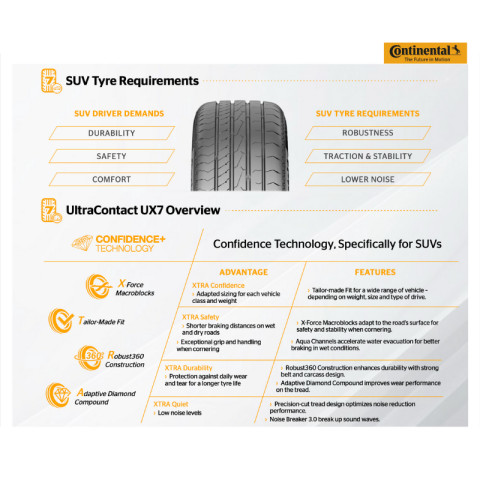 ให้ทุกการเดินทางของคุณเต็มไปด้วยความมั่นใจ นุ่ม เงียบ ปลอดภัย และทนทาน ด้วย Continental UltraContact UX7 ปี 2025 ยางพรีเมียมสำหรับรถ SUV ที่ออกแบบมาเพื่อการขับขี่ในชีวิตจริงของคุณ