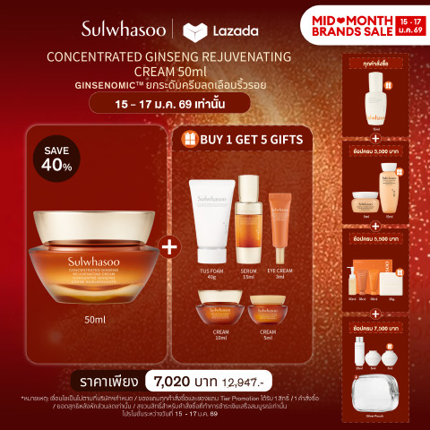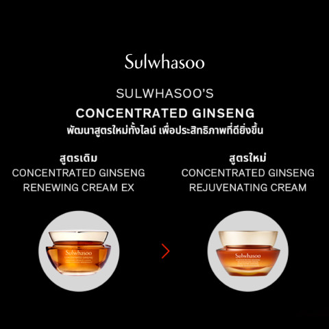 สัมผัสที่สุดแห่งครีมบำรุงผิวระดับไอคอนจากโซลวาซู [NEW] SULWHASOO Concentrated Ginseng Rejuvenating Cream 50ml ครีมต่อต้านริ้วรอยสูตรปรับโฉมใหม่ ที่ยกระดับพลังโสมสกัดเข้มข้น มอบผิวแลดูอ่อนเยาว์ กระชับ เต่งตึง และชุ่มชื้นอย่างล้ำลึก ด้วยราคาเพียง 6,630 บาท ที่คัดสรรมาเพื่อคนรักการบำรุงผิวอย่างจริงจัง