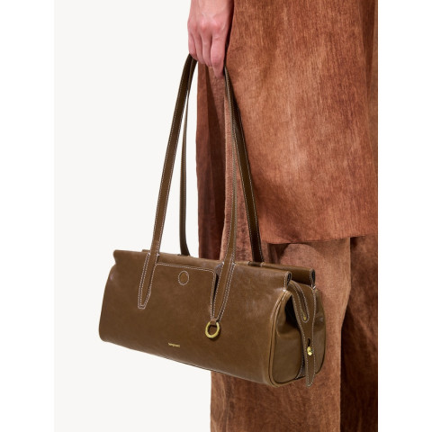 Songmont Yore Baguette Bag กระเป๋าหนังสุดชิคสำหรับสะพายและหิ้ว ที่ยิ่งใช้ยิ่งสวยด้วยเสน่ห์ของหนังฟอกฝาด (Vegetable-tanned Leather) ผิวสัมผัสเป็นธรรมชาติ มีลวดลายและความไม่สม่ำเสมอเฉพาะตัวที่บอกเล่าร่องรอยของเวลา เหมือน “เพื่อนคู่ใจ” ที่ค่อย ๆ เติบโตไปพร้อมสไตล์ของคุณ