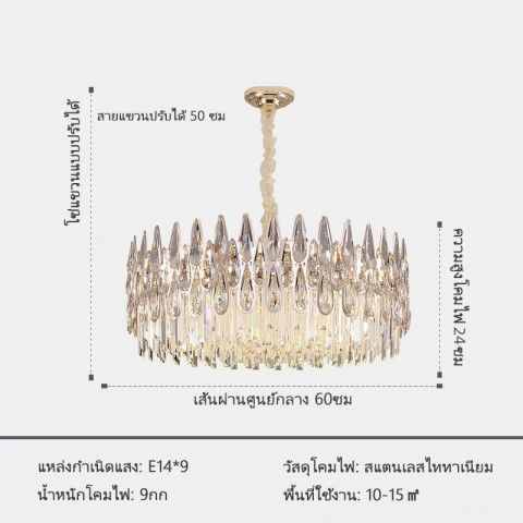 อุปกรณ์ในกล่อง: โคมไฟระย้า + ชุดติดตั้ง + หลอดไฟ E14 ฟรี