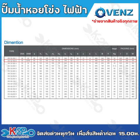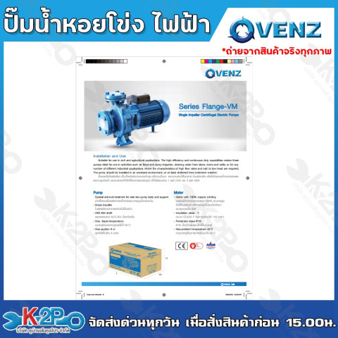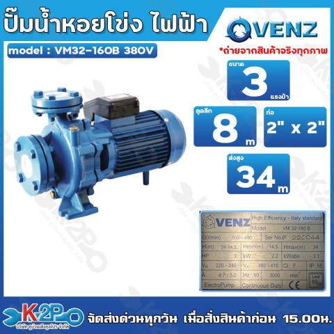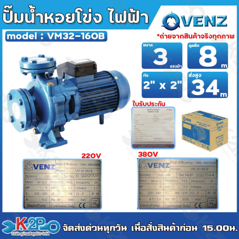 VENZ ปั๊มน้ำหอยโข่งไฟฟ้า 2x2 นิ้ว หน้าแปลน 3 แรงม้า รุ่น VM32-160B ตัวช่วยงานสูบน้ำที่ให้แรงส่งดี น้ำไหลต่อเนื่อง เหมาะสำหรับงานระบบน้ำในโรงงาน อาคาร ฟาร์มเกษตร งานรดน้ำ และงานส่งน้ำทั่วไปที่ต้องการความทนทานและประสิทธิภาพสม่ำเสมอ มาพร้อมหน้าแปลนติดตั้งแน่นหนา ลดการรั่วซึม และดูแลง่ายในระยะยาว