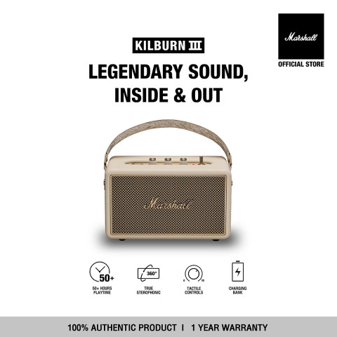MARSHALL KILBURN III CREAM ลำโพงบลูทูธพกพาสุดคลาสสิกจาก Marshall โทนสีครีมเรียบหรู ให้เสียงทรงพลังสไตล์ร็อกซิกเนเจอร์ พกพาไปได้ทุกที่ พร้อมความมั่นใจจาก Marshall Official Store ของแท้ 100% และรับประกันศูนย์ไทย 1 ปีเต็ม ในราคา 14,490.00 บาท พร้อมส่งฟรี