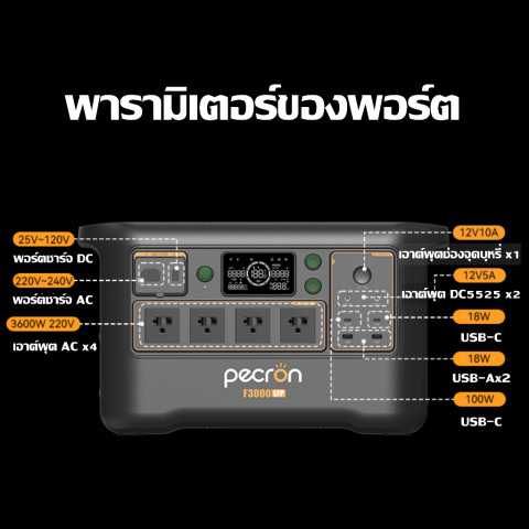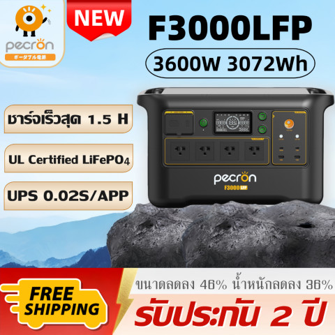 【รุ่นใหม่ สต๊อกไทย】PECRON F3000LFP Portable Power Station 3600W 3072Wh พาวเวอร์สเตชั่นแบบพกพา ตัวจบสำหรับบ้าน ร้านค้า และสายแคมป์ที่ต้องการไฟสำรองแบบจริงจัง ด้วยกำลังจ่ายสูง 3600W รองรับอุปกรณ์กินไฟได้หลากหลาย พร้อมความจุ 3072Wh ใช้งานได้นานขึ้น และมี UPS สลับเป็นไฟสำรองอัตโนมัติเมื่อไฟดับ เพิ่มความอุ่นใจทั้งกลางวันและกลางคืน (มาพร้อม รถเข็น เคลื่อนย้ายสะดวก)