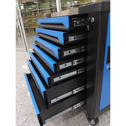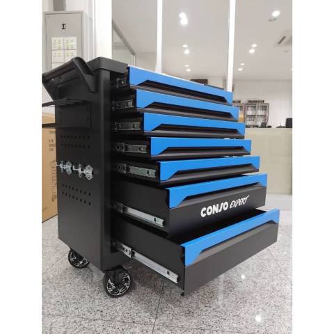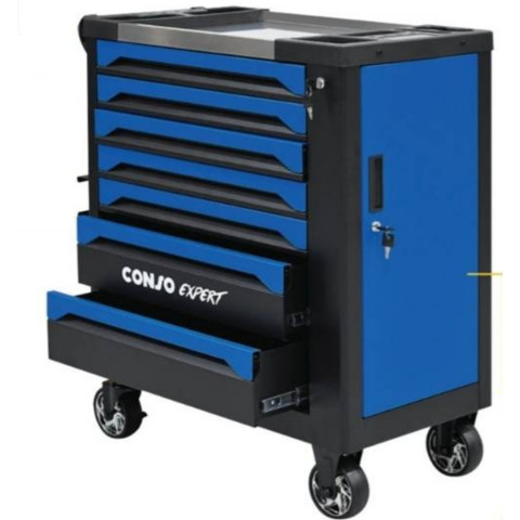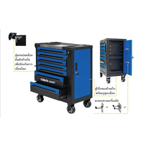 CONSO ตู้เครื่องมือ 7 ลิ้นชัก สีน้ำเงินดำ รุ่น CS3307-H คือผู้ช่วยจัดระเบียบเครื่องมือสำหรับงานช่างและงานซ่อมบำรุงที่ทั้งแข็งแรง ใช้งานคล่องตัว และดูเป็นมืออาชีพ โทนสี น้ำเงิน-ดำ ช่วยให้มุมทำงานดูเรียบร้อยทันสมัย พร้อมฟังก์ชันจัดเก็บครบ ใช้ได้ทั้งในโรงรถ เวิร์กช็อป หรือหน้างาน
