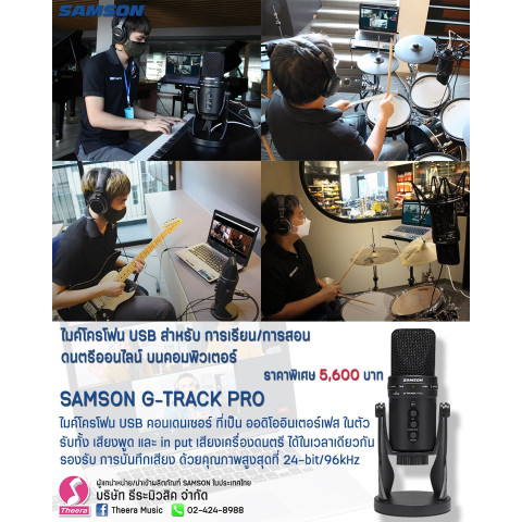 ตอบโจทย์การเรียนดนตรีออนไลน์ เช่น กีต้าร์ไฟฟ้า กลองไฟฟ้า เปียโนไฟฟ้า ผ่านโปรแกรมต่าง ๆ ได้สะดวก เพียงเสียบไมค์เข้าคอม แล้วเลือกอุปกรณ์ Record/Playback ในโปรแกรมเป็น SAMSON G-Track Pro ก็พร้อมใช้งานทันที