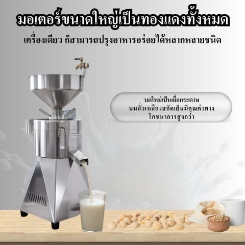 เครื่องคั้นน้ำเต้าหู้ รุ่น SY-100B : Soya Milk Machine เครื่องทำน้ำเต้าหู้สเตนเลสสำหรับงานขายและงานผลิตจริง จบครบในเครื่องเดียว โม่ถั่วละเอียด แยกน้ำแยกกากอัตโนมัติ ไม่ต้องกรองซ้ำ ช่วยประหยัดเวลา ได้รสสัมผัสเนียนสม่ำเสมอ เหมาะทั้งร้านน้ำเต้าหู้ รถเข็น ร้านอาหาร โรงงานขนาดเล็ก หรือผู้ที่ต้องการเพิ่มกำลังการผลิตให้ทันออเดอร์