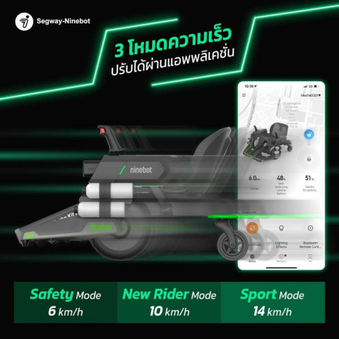 เชื่อมต่อแอป Segway (iOS/Android) ตั้งค่าความเร็ว ล็อคเครื่อง อัปเดตเฟิร์มแวร์ และดูข้อมูลการใช้งานได้