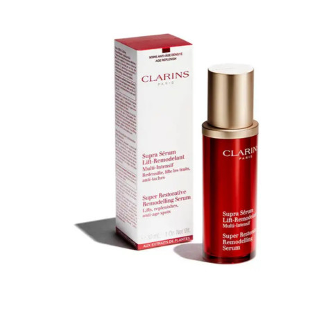 CLARINS Super Restorative Serum 30ml. เซรั่มเข้มข้นพิเศษสำหรับผิวที่อ่อนแอและต้องการการบำรุงแบบเร่งด่วน ช่วยฟื้นฟูผิวให้กลับมาดูเปล่งปลั่ง อ่อนเยาว์ พร้อมคืนสัมผัสผิวที่ดูเรียบเนียน กระชับได้รูป เหมาะสำหรับผู้ที่กังวลปัญหาผิวหมองคล้ำ จุดด่างดำ ริ้วรอย และความยืดหยุ่นที่ลดลง ให้ผิวดูมีชีวิตชีวาอีกครั้งในทุกวัน