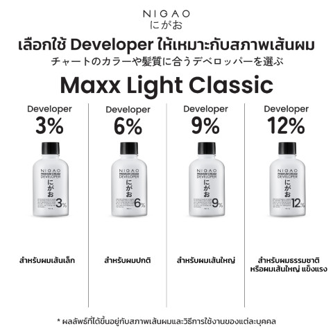 ข้อแนะนำ: หากผมหนา ควรเพิ่มปริมาณอีก 1 หลอด เพื่อให้ฟอกได้ทั่วถึงและสีสม่ำเสมอ