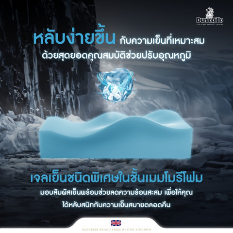 เจลโครงสร้างน้ำและสารสกัดจากธรรมชาติ ช่วยกักเก็บความเย็น ดูดซับความร้อน ลดอับชื้น ผสาน Visco Tech ที่ดูดซับแรงกดทับแบบ Progressive รองรับได้มีประสิทธิภาพมากกว่าเมมโมรีโฟมทั่วไปชั้นกระจายแรงกดทับ