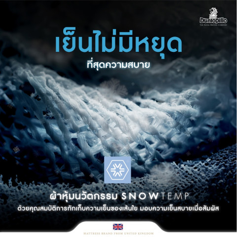 ใยสังเคราะห์คุณภาพสูง + แผ่น Medium Foam Multiple Layers เพิ่มความนุ่มแน่น กระจายแรงกดทับเบื้องต้นให้ผ่อนคลายยิ่งขึ้นผ้าหุ้ม SNOWTEMP Fabric