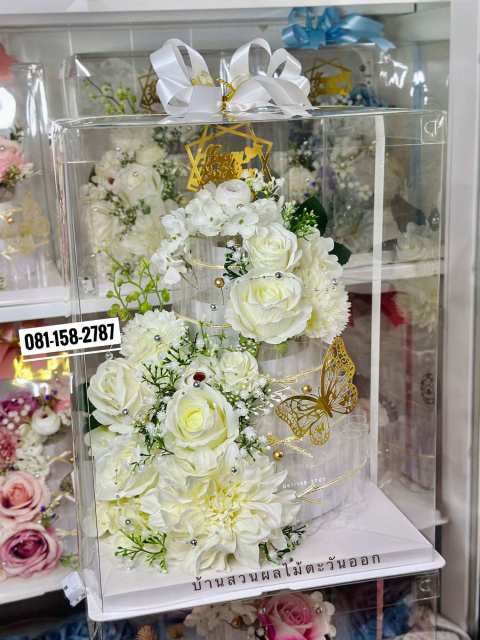 ตกแต่งด้วย ดอกไม้เกรดพรีเมียม โทนสีเลือกได้ (สามารถแจ้งโทนที่ชอบในแชท)
