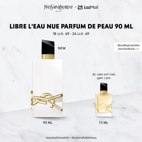YSL LIBRE L’EAU NUE PARFUM DE PEAU 90ML น้ำหอมสำหรับผิว (Parfum de Peau) ปราศจากแอลกอฮอล์ขวดแรกจาก YSL Beauty ที่มอบสัมผัส “อิสระแห่งฤดูร้อน” ผ่านกลิ่นหอมละมุน สดชื่น และเย้ายวน พร้อมช่วยให้ผิวดูเปล่งประกายด้วยนวัตกรรมสูตร OIL-IN-WATER ให้ฟีลเบาสบาย สวยหรู และน่าหลงใหลตลอดวัน