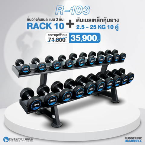 ชุดดัมเบล 10 คู่ 2 ชั้น พร้อมแร็ควางดัมเบล รุ่น R103 - Homefittools (HFT) ราคา 35,900.00 บาท