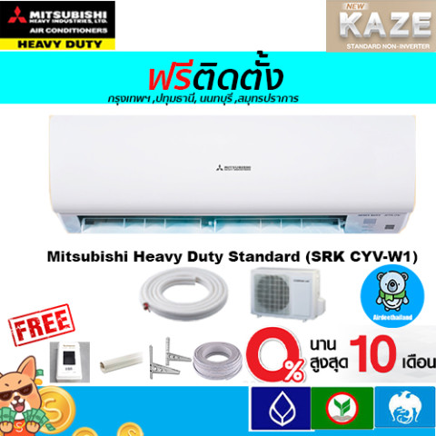 🔥ฟรีติดตั้ง🔥 Mitsubishi Heavy Duty รุ่น Standard KAZE Series เบอร์ 5 (SRK-CYV) ใหม่ ราคา 37,599.00 บาท (รวมค่าติดตั้งแล้ว) สำหรับพื้นที่ กรุงเทพฯ, ปทุมธานี, นนทบุรี, สมุทรปราการ เลือกความเย็นให้เหมาะกับขนาดห้อง เย็นเร็ว ใช้งานคุ้มค่า พร้อมรับประกันจากผู้ผลิต สบายใจตั้งแต่วันติดตั้ง