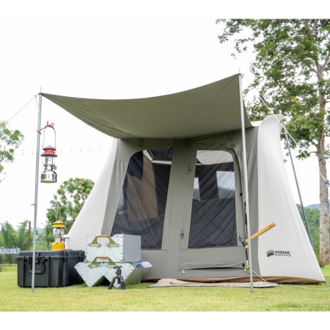 ภายในโปร่งโล่งด้วยความสูงเพดาน 1.86 ม. เดินเข้าออกได้สบาย รองรับได้ถึง 4 คน และมี กันสาดขนาดใหญ่ 1.78 x 1.45 ม. ช่วยบังแดด/ฝน เพิ่มพื้นที่ใช้งานหน้าเต็นท์ให้สะดวกยิ่งขึ้น