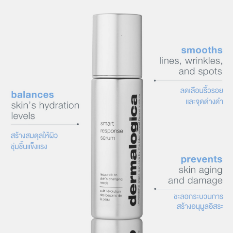 Dermalogica Smart Response Serum 30ml เดอร์มาลอจิกา สมาร์ทเรสปอนส์เซรั่ม เซรั่มนวัตกรรมเพื่อดูแลผิวหน้าและลดเลือนริ้วรอย ราคา 7,600.00 บาท ช่วย “อ่านสัญญาณผิว” ที่เปลี่ยนแปลงในแต่ละวัน แล้วปรับการบำรุงให้เหมาะกับความต้องการของผิวในขณะนั้น เสมือนมีการดูแลแบบเฉพาะบุคคลทุกวัน เพื่อผิวที่ดูเรียบเนียน แข็งแรง และมีชีวิตชีวา