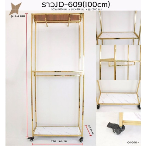 ราวสแตนเลสสีทอง ราวแขวนผ้าโชว์ 2 ชั้น แบบหนา รุ่น JD-G09 ราคา 7,980.00 บาท (ราคานี้ ไม่รวมล้อ)