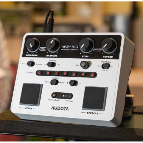 Audota AVE-100 เอฟเฟคร้อง Vocal Effects ราคา 5,400.00 บาท อุปกรณ์มัลติเอฟเฟกต์สำหรับเสียงร้องที่ช่วยยกระดับโทนเสียงให้คมชัด มีมิติ และฟังดูเป็นมืออาชีพทั้งบนเวทีและในห้องอัด มาพร้อมระบบอัจฉริยะที่ช่วยให้ใช้งานง่าย ตั้งค่าไว และมั่นใจได้ว่าเสียงร้องจะ “เด่น” โดยไม่ต้องพึ่งอุปกรณ์หลายชิ้น