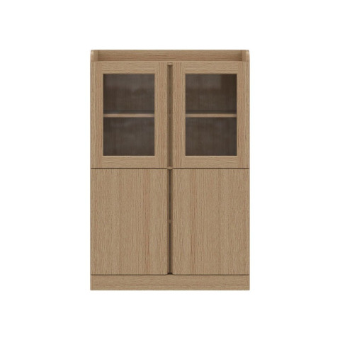 ตู้เก็บของ TOMO มาพร้อมหน้าบานเปิด 4 บาน แยกสัดส่วนชัดเจน ด้านบนเป็น บานกระจกใส สำหรับโชว์ของที่อยากให้เห็น ด้านล่างเป็น บานทึบ สำหรับเก็บของที่ต้องการความเป็นส่วนตัว ทุกบานมาพร้อมระบบ Soft Close ปิดเบา เงียบสนิท ลดแรงกระแทกและยืดอายุการใช้งาน