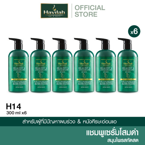 ฮาวิล่าห์ (Havilah) ชุด H14 แชมพูแก้ผมร่วง 300มล. x6 (ส่งฟรี) คุ้มค่าสำหรับคนที่ต้องการดูแลปัญหาผมร่วงอย่างจริงจังด้วยแชมพู สูตรสมุนไพรสด ที่ช่วยทำความสะอาดอย่างอ่อนโยน เพิ่มความชุ่มชื้นให้หนังศีรษะ และฟื้นบำรุงเส้นผมให้กลับมาแข็งแรง แลดูหนาขึ้นอย่างเป็นธรรมชาติ เหมาะสำหรับใช้ต่อเนื่องทั้งครอบครัว ใช้ได้ทั้งชาย-หญิง ทุกวัย
